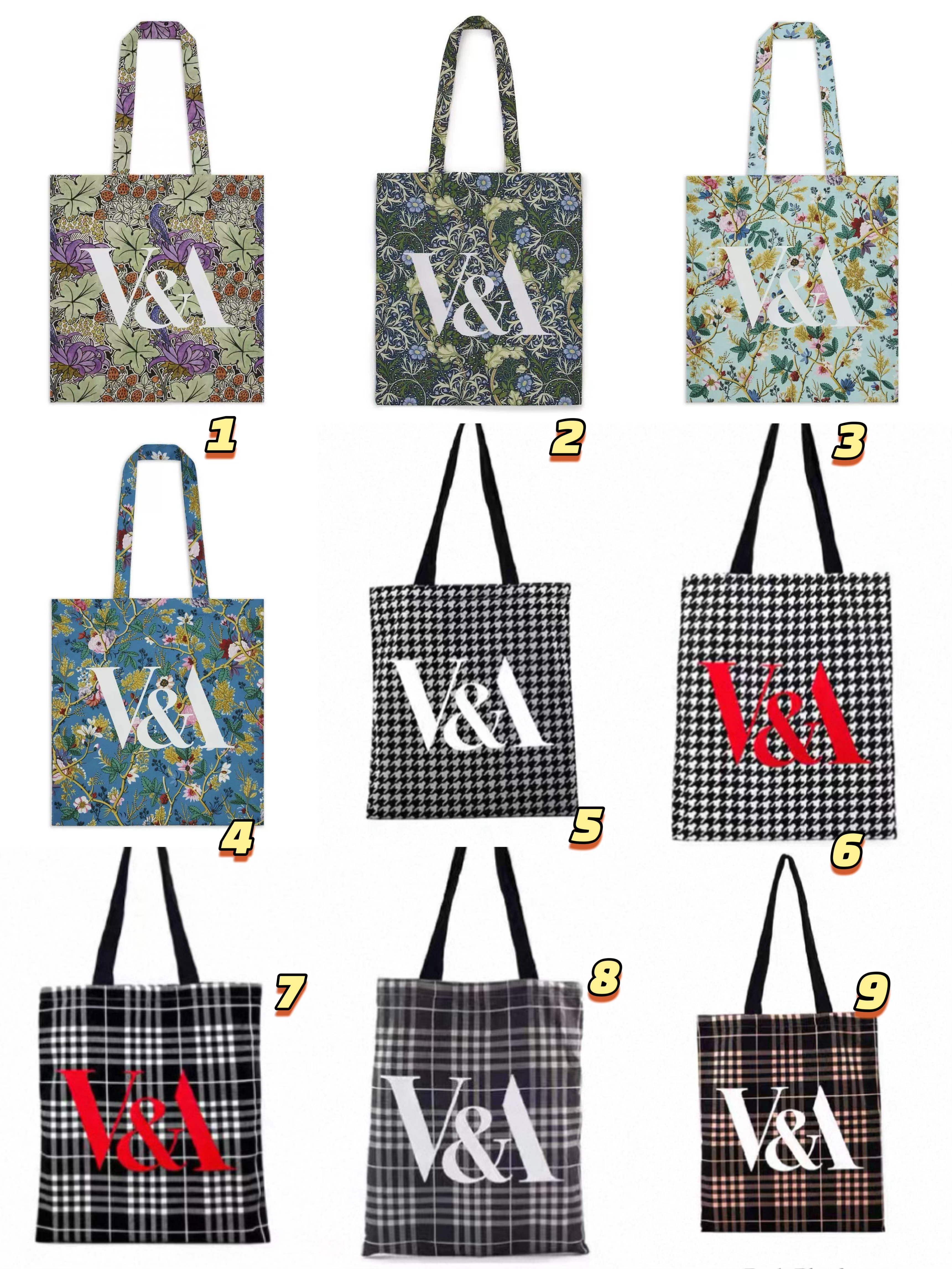 英國 VA博物館 周邊帆布包袋 千鳥格格紋/植物 V&A雙面印花帆布包袋
