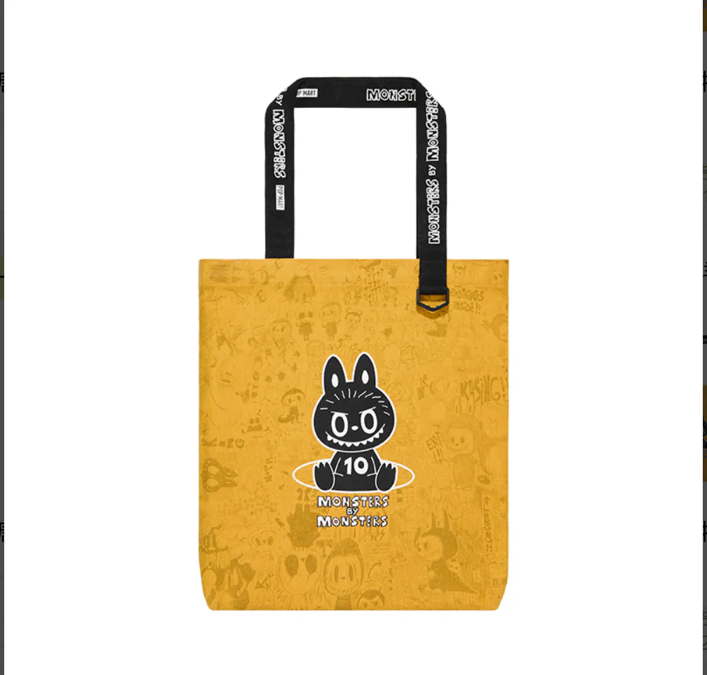 上海展會限定十週年 POPMART LABUBU 10週年娃$1300 搖搖樂匙扣$349 鏡$85 環保袋$120 盲盒匙扣$190