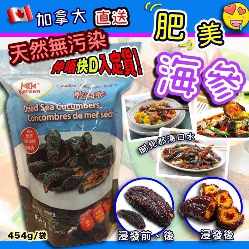 加拿大直送 終於等到佢回歸👏🏻👏🏻 加拿大Kersen加東野生乾海參 ❤️* 非常方便嘅款式,終於等到佢特價回歸 買定嚟放喺屋企做存貨康門口!非常之方便 海參一家大細都啱食👍🏻一定要補下 ❇️454g ❇️帶參肉35-45頭 ❇️北極圈無刺純正野生海參 ❇️富含豐富的氨基酸,海參素,礦物營養成分,海參粘多糖,脂肪酸,富含膠原蛋白! ❇️低膽固醇、低脂肪 ❤️海參來自於加東靠近北極圈的大西洋深海底~水質冰冷潔淨無污染。❤️ 🤤圖中一條一條既係海參筋-與海參體壁有相同的活性的成分,含豐富的海參皂甙,酸性軟骨素,精氨酸等稀有的營養成分。 👍🏻加拿大海參出名無污染,海參性價比高