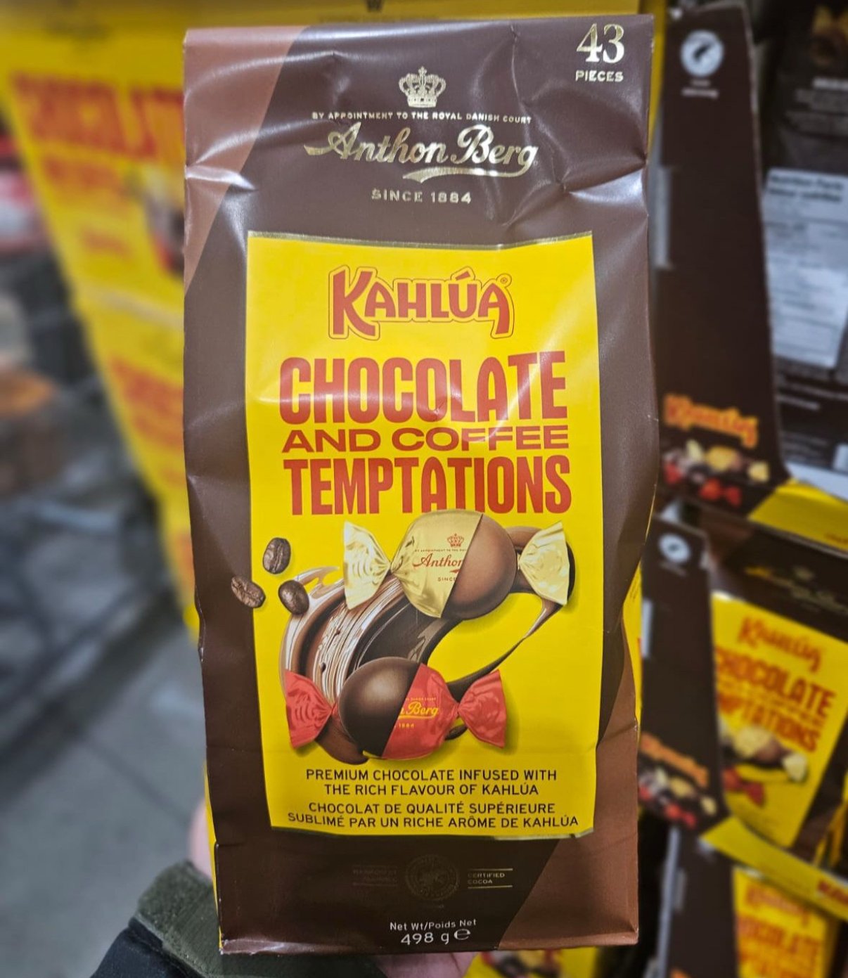 加拿大空運直送 快閃⚡️⚡️⚡️ ⏰限時優惠,今晚截9點 限時特價,加拿大同事幫大家去買 原價$178❌❌❌🈹🈹 特價:$13x❗️買兩包仲要減$10 😍鍾意咖啡酒同朱古力嘅您,一定唔可以錯過🌟 🔗歡迎網站落單 Anthon Berg 咖啡酒心朱古力 (498g =43 粒) 由丹麥百年皇室御用品牌 Anthon Berg 同Kahlua 咖啡酒聯手打造的朱古力🌟 ❇️採用高級牛奶朱古力 ❇️流心內餡係濃郁的kahlua 咖啡酒+ 幼滑焦糖,雙重軟心驚喜 📆最佳食用日期07/2026