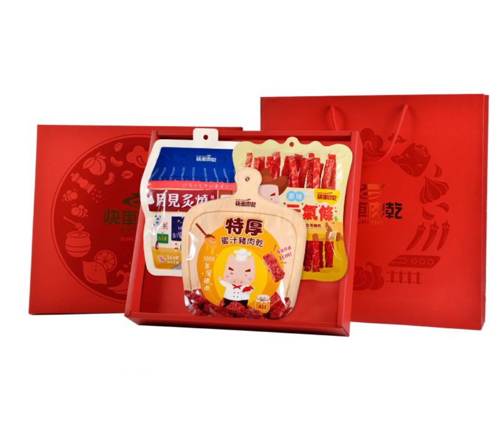 台灣快車肉乾 2026新年禮盒🎁 🔗歡迎網站落單買兩盒減$10 A/快車肉乾-豪華雙饗★經典小禮盒3入◆ 禮盒內容物: A11特厚蜜汁豬肉乾200g A12特厚黑胡椒豬肉乾200g A30特厚麻辣鍋豬肉乾200g 效期:120日 重量:約600G B/快車肉乾-FUDI福弟禮盒〔隨手包共3包〕 禮盒內容物: 杏仁香脆肉紙 A1芝麻60g 隨手包肉乾 A9 傳統蜜汁豬肉乾 85g A10 傳統蜜汁黑胡椒豬肉乾 85g 效期:120日 重量:約230G