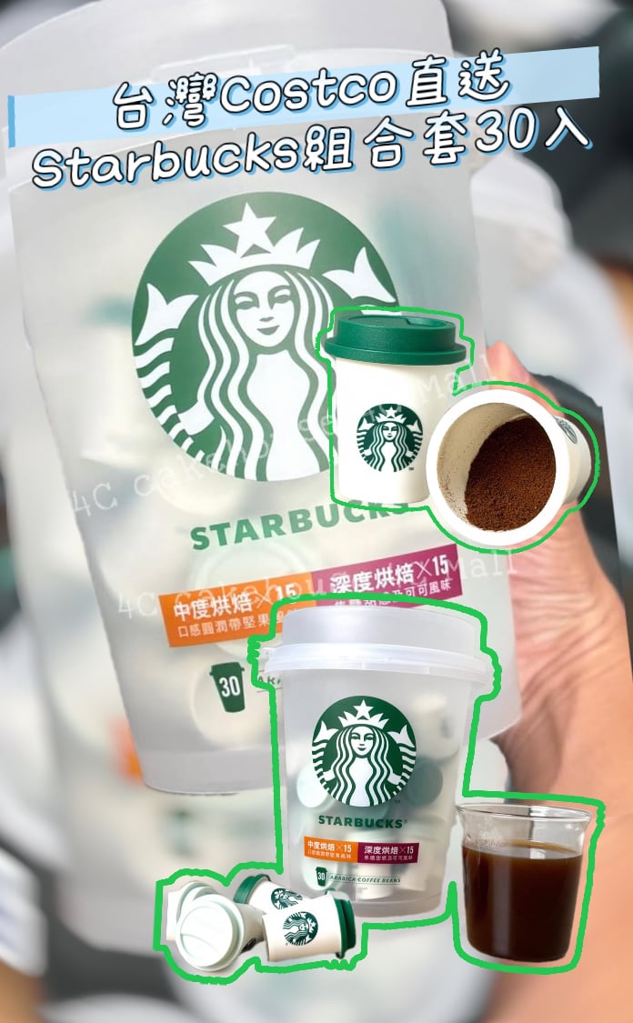 台灣Costco Starbucks即溶咖啡粉一組30入 🔗歡迎網站落單 真的超級可愛!就算不是Starbucks的愛好者都會想買的程度😍 不止外包裝是隨星杯的造型,裡面的小包咖啡粉也是迷你隨星杯造型心逛Costco 看到剩一點點馬上買回家,社群有好多人說都搶不到呢! 淺色蓋子是中烘培、深色的則是深烘培 使用230ml的溫熱水沖泡也可以加牛奶泡拿鐵喝,真的超級方便! 📆22/11截 📆5/12到✈️✈️✈️