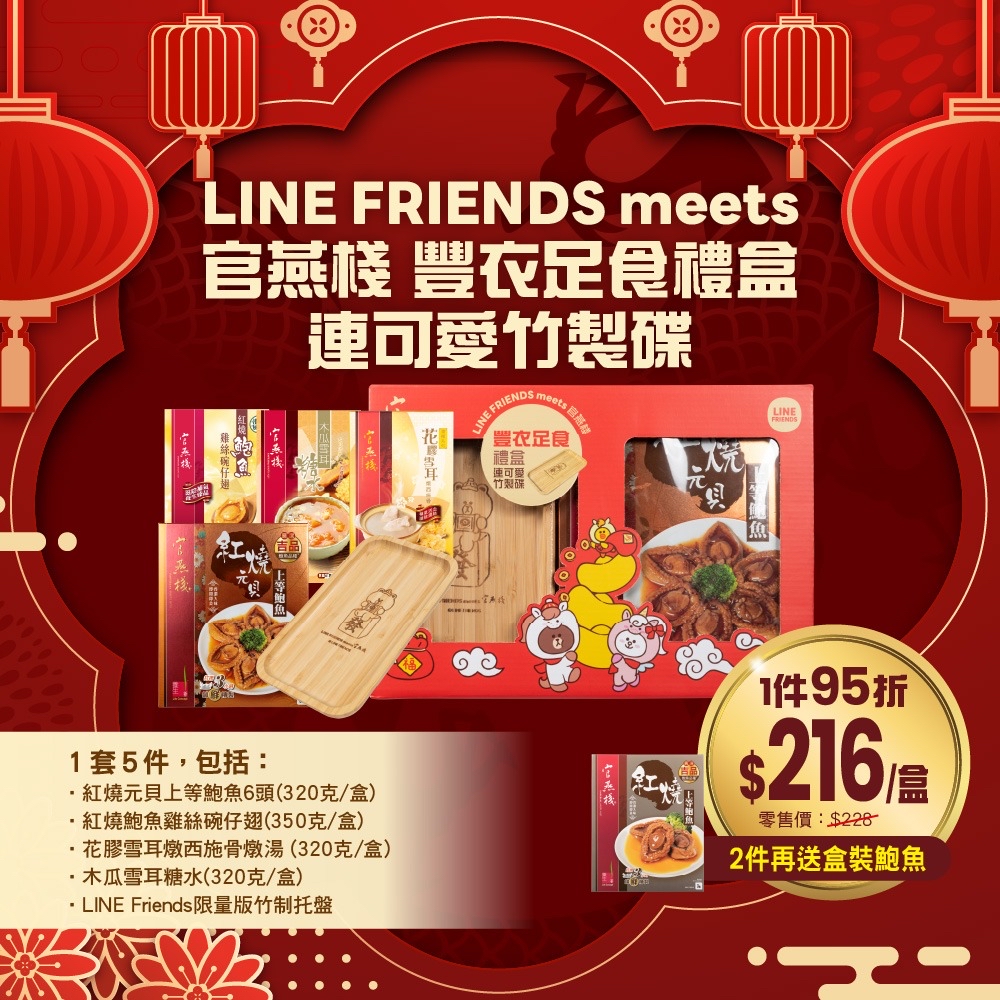 LINE FRIENDS MEETS官燕棧豐衣足食禮盒連可愛竹製碟