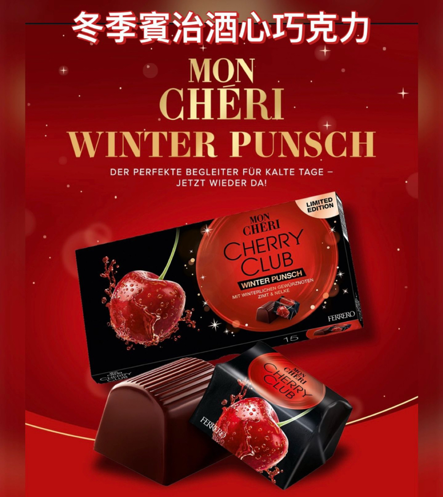 德國🇩🇪直送 快閃⚡️⚡️⚡️ 今年再次回歸 📣終於等到冬季開團喇😍 🇩🇪德國代購~每年都好多客人查詢回購 ✨*Mon Cheri 酒心朱古力 3款* 😋今年又有新口味呀❣️ ⏰截單日:11月14日中午 🎁到貨日:預計12月上旬 3個口味: A)💜最新限定口味~黑加侖子伏特加酒心朱古力 New & Limited: CASSIS VODKA B)💚冬季限定~ Winter Punsch 冬季賓治酒心朱古力 🎉送禮分享🥳派對必備 C)❤️原味櫻桃酒心朱古力 (車厘子酒心) 💁🏻♀️經典之選🎁獨一無二嘅味道 內容:15粒/盒 保存方式:避免陽光直射,請置於20°C以下陰涼乾燥地方 ‼️注意事項: - 請確保商品放在嬰兒和孩童接觸不到的地方。 - 此商品含微量酒精成分,客人必須年滿18歲,不建議提供給未成年人食用。 ==⚠️ 聲明及訂購須知 ⚠️== 1. 所有帖文內容只作分享及參考用途。為免混淆視聽,所有商標或版權均屬有關商品品牌商標的持有人,敬請留意。 2. 廠家出貨時間、各種運輸物流等,有可能因各種不可控因素而延誤到貨。成功訂購後,如非斷貨,不設轉換其他商品/退款,不接急單,如不能接受請勿下單。 3. 顏色或因拍攝器材或螢幕等因素而與實物有異,一切以實物為準。 4. 以上資料及外盒包裝只供參考,商品外盒原廠有更換新包裝權利,一切以實物為準。 5. 貨品在運輸途中,有可能受擠壓踫撞而引至外盒微損,但不影響其產品本身食用/使用,完美主義者慎購!