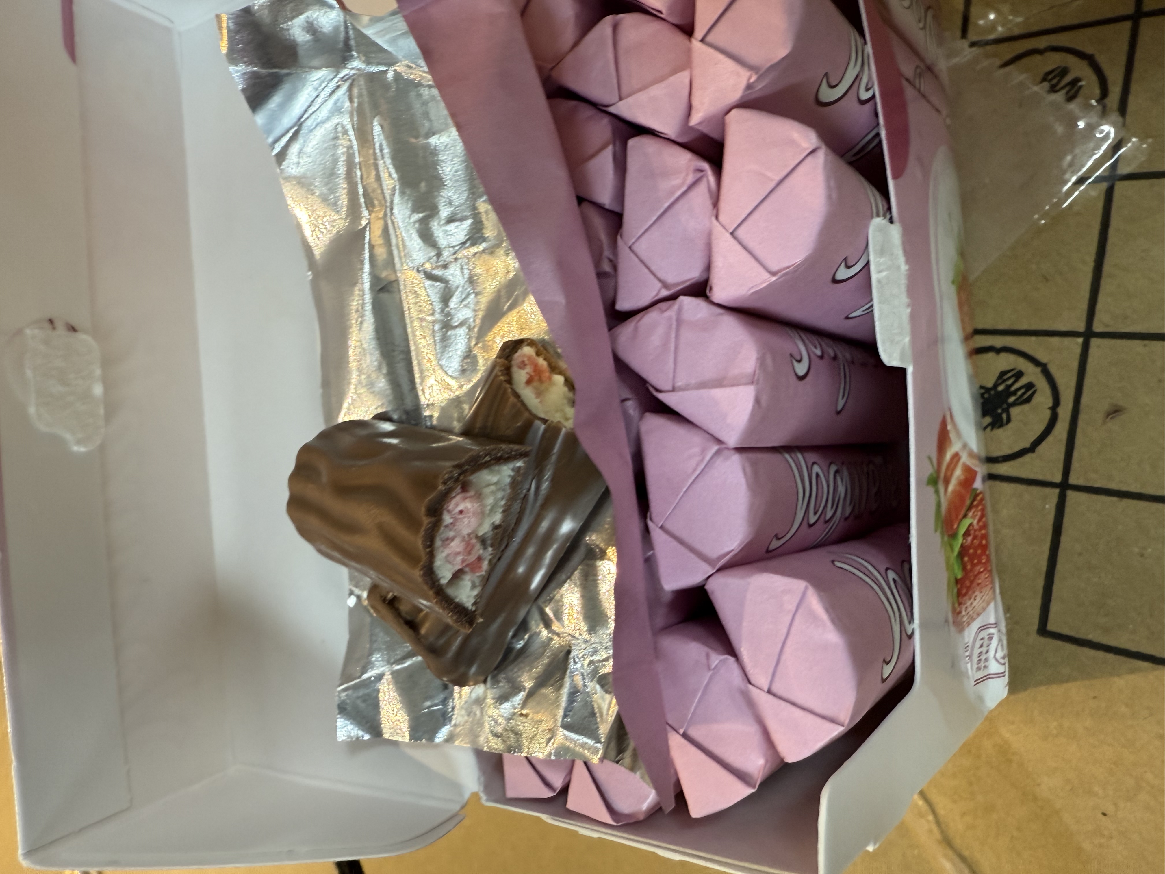 德國直送 Ferrero Yogurette 士多啤梨乳酪朱古力 Ferrero Yogurette 士多啤梨乳酪朱古力 24 條裝 🔗歡迎網站落單 今日小編收到即刻試咗😋😋😋😋 真心覺得好食,唔係賣花讚花香👍🏻 超好食嘅一個款式,外邊係一個黑色嘅朱古力唔會太甜,裏便係士多啤梨Yogurt口味🍓 酸酸甜甜,非常之好食🤗🤗🤗 獨立包裝的美味全脂牛奶朱古力條,內填脫脂牛奶乳酪和士多啤梨奶油,讓每一口細嚼片刻都成為令人耳目一新的甜蜜體驗。 為了獲得更新鮮的享受,請直接從冰箱中冷藏。 * 果味、朱古力味 * 無麩質 * 產地︰德國 * 包裝包含 9 條 穀物夾心牛奶朱古力。 *存放在陰涼,乾燥的地方。 ⭕️ 24條裝比8條裝更加平,所以最後我哋係揀咗24條裝 📆24/12 3:00截單 📆預計一月初到貨