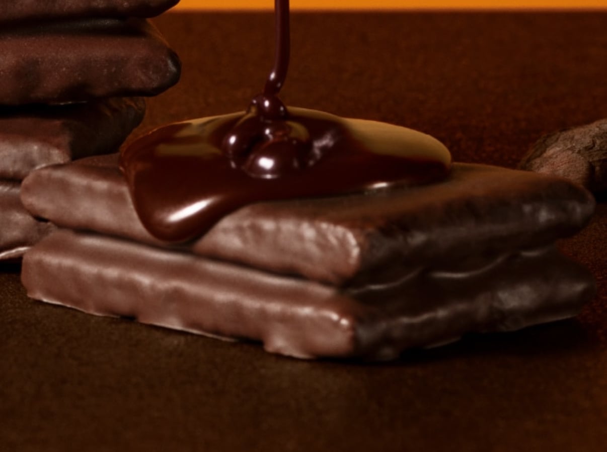 一款奢華的夾心餅,淋上濃鬱的「炭烤朱古力」