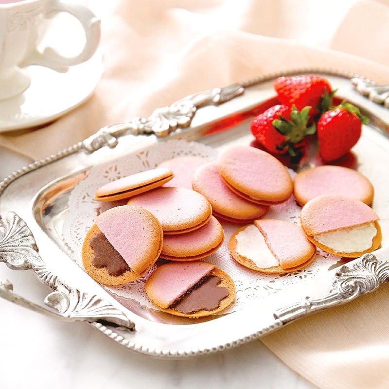 日本千壽堂 草莓貓舌餅 柔滑的巧克力夾在輕盈酥脆的甘王草莓貓舌餅乾之間…牛奶巧克力和白巧克力夾在用福岡縣甘王草莓製成的草莓果泥揉製的貓舌餅乾之間。享受柔和的甜味和輕盈的口感。 ●內含:貓舌餅乾(白巧克力和巧克力口味各4塊) ●過敏原:雞蛋、牛奶、小麥 ●包裝盒尺寸:175 x 160 x 30 毫米 [60] RH ●保質期:室溫保存,自生產日期起180天 ●原產國:日本 📆12/1截 📆5/2到