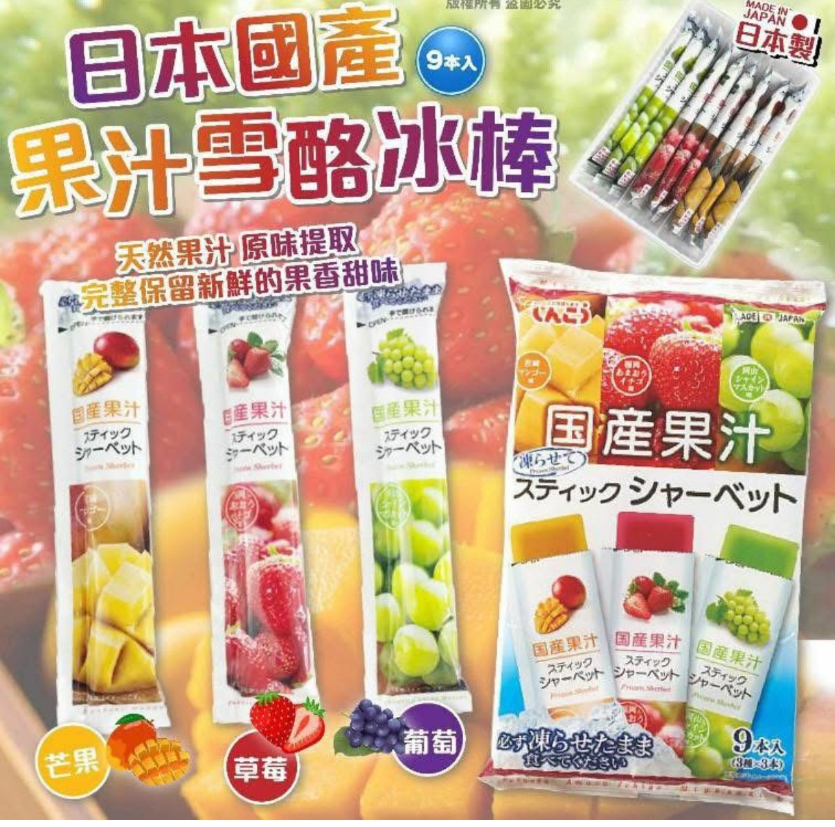 日本直送日本產果汁雪酪冰棒9入(草莓、芒果、麝香葡萄各3)
