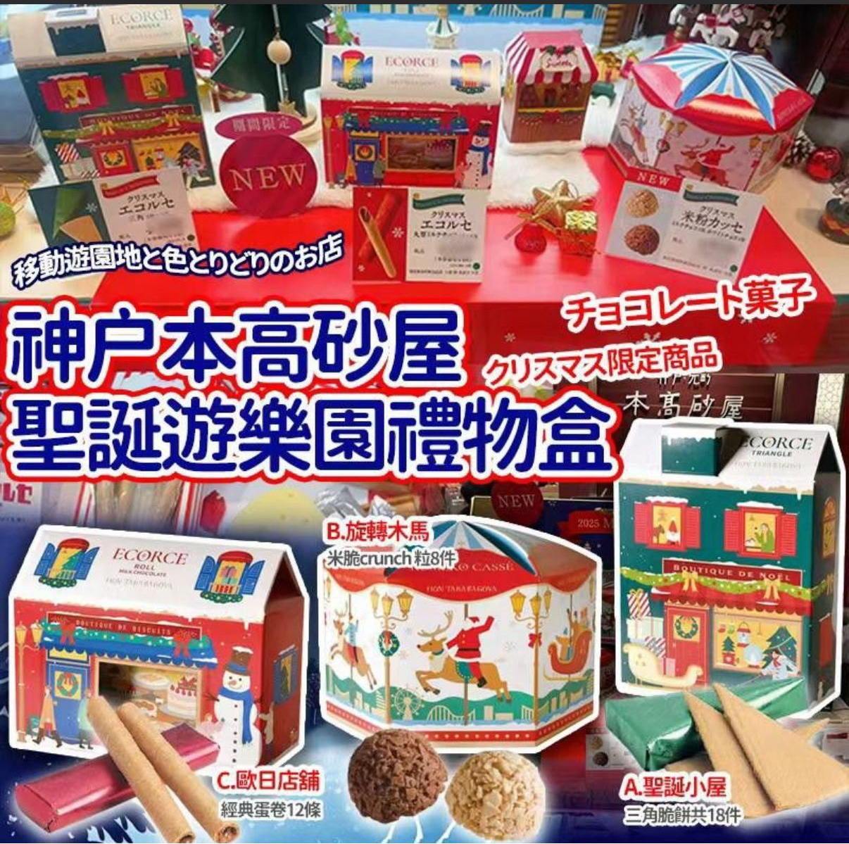 日本直送🇯🇵🎄聖誕團🎄 日本直送|期間限定|外貌協會必收✨ 今年本高砂屋真係爆發創意💥 色彩繽紛 + 超立體造型包裝 打開就好似去咗日本聖誕遊樂園咁😍 絕對係 「收到嗰刻已經好開心」 嗰種禮物盒! 🎅🏻 聖誕交換禮物 🎄 辦公室派對 🎁 送比朋友 / 客戶 / 小朋友 全部都超~啱~用‼ ❤ 外盒極立體、好似模型咁精緻 ❤ 日本限定設計,專櫃同款 ❤ 禮盒打開立刻變氛圍感,影相爆靚 ❤ 送禮零難度,包裝靚到唔使再包紙 神戶本高砂屋聖誕遊樂園禮物盒 A.聖誕小屋 B.旋轉木馬 C.歐日店舖 -產地:日本 -賞味期限:出廠日計180天