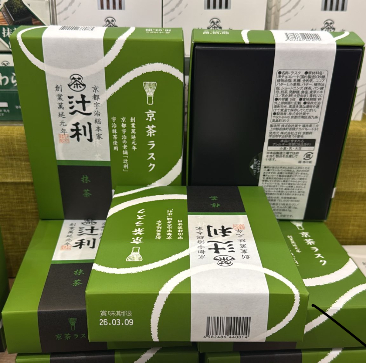 日本直送 京都 宇治総本家辻利 京茶ラスク 抹茶 焙茶 茶麵包脆餅 日本伴手禮 5入/混合版各5入 🔗 🍵京都 宇治総本家辻利🍵 在京都享有盛名且歷史悠久的宇治抹茶店鋪,只要是辻利家出的抹茶商品,都是闆闆到京都旅遊時必買的伴手禮,最推薦的是辻利家的『抹茶夾心餅乾』,外層的抹茶餅乾口感酥脆,抹茶茶香中還帶有淡淡的奶香氣,內層的抹茶巧克力甜度低,所以很容易就會一片接著一片吃下去~ 🤫 與京都北山的茶之菓相比,闆闆私心更喜歡辻利家的『抹茶夾心餅乾』~真心推薦給也喜愛抹茶的客人^^ 🌟『京茶ラスク』或稱『京茶麵包脆餅』,是將法國麵包切成薄片烘烤至如同餅乾一樣酥脆後,在外層抹上產自京都宇治的抹茶、焙茶巧克力製作而成,是一款超級不甜但茶香氣十足的餅乾~ 闆闆吃過一次後就不斷回購🎁 推薦給不喜甜但又想品嚐濃郁茶香的你(妳)~ 選擇大盒裝還可以同時享有抹茶🍃及焙茶🍂風味的ラスク喔😋 *京茶ラスク-抹茶5入紙盒裝 *京茶ラスク-焙茶5入紙盒裝 *京茶ラスク-抹茶+焙茶各5入紙盒裝 賞味期限:約45日(僅供參考,商品效期仍以實際於店面購買者為準) 📆23/1截 📆8/2左右到 📆最佳食用日期03/2026