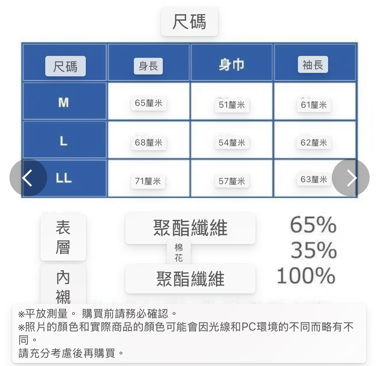 日本直送 保暖打底衫裏面有毛 限時優惠,特價中男女可穿 三個尺寸可選 🔗 M 身丈:65cm 身巾:51cm 袖丈:60cm L 身丈:68cm 身巾:54cm 袖丈:62cm LL 身丈:71cm 身巾:57cm 袖丈:63cm