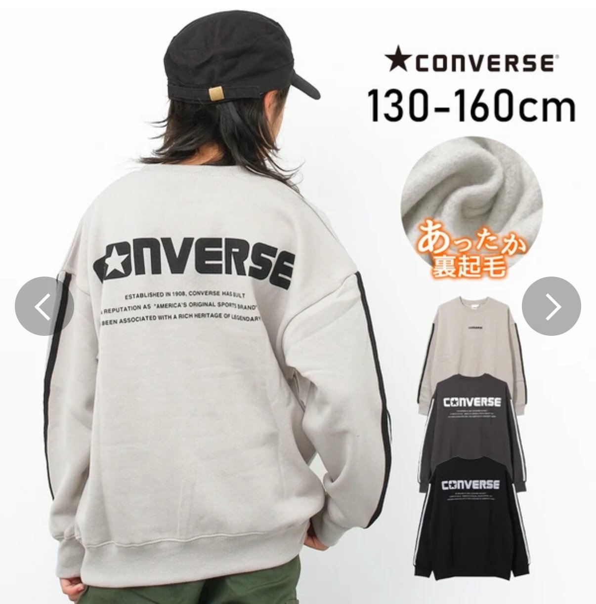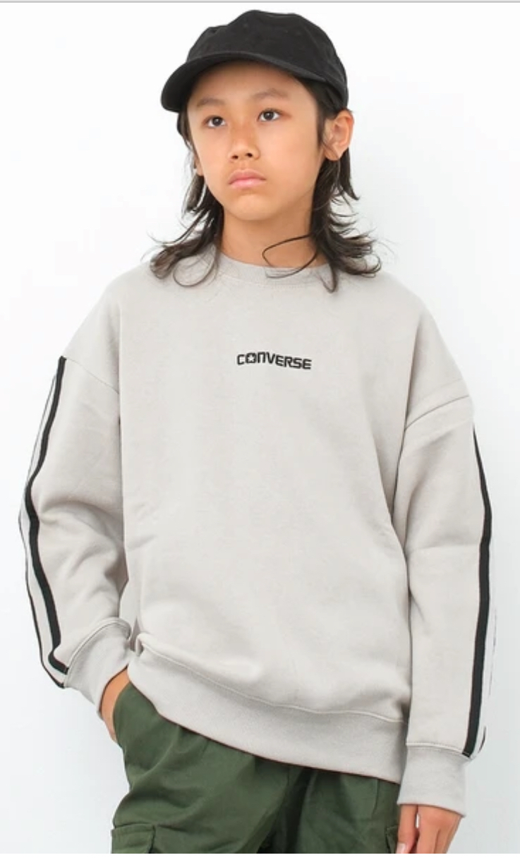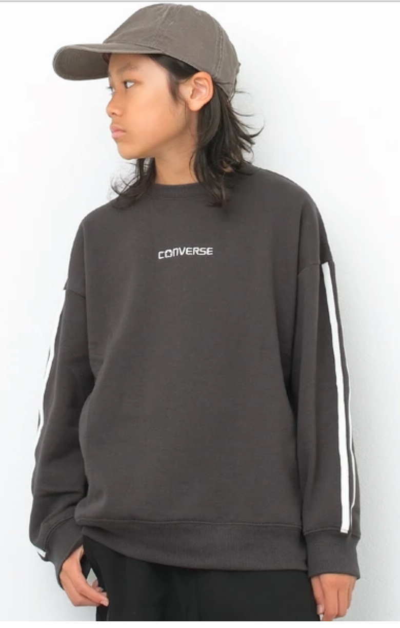 日本直送 日本限時特價優惠中 CONVERSE 定製袖線背部印花背面起毛運動衫 暖和 中心大童裝