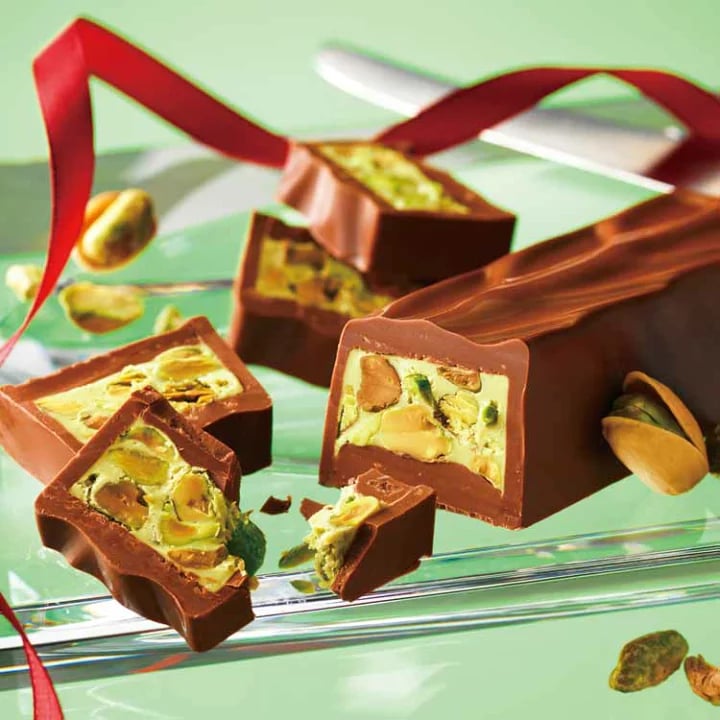 日本直送 日本🇯🇵Royce開心果朱古力條 ROYCE特別推出一款北海道限定的「Pistache Chocolat」(開心果味朱古力條) 以香濃的開心果奶油混合成牛奶朱古力,中間更包裹著極多份量的深烤開心果及鹽漬開心果,讓這款朱古力吃起來口感十分豐富,開心果控定會愛上🩷! 兩種開心果,深烤開心果和鹹開心果,混合著芬芳濃郁的開心果奶油,包裹在入口即化的牛奶朱古力中。 切塊時,光滑的開心果奶油和大量的開心果展現出富有表現力的面孔。 開心果的味道,它會帶出開心果的芬芳和美味。 隨自己喜歡的厚度切割食用。 *用熱刀切成你想要的厚度,然後享用。 將朱古力保持在 20-25°C 使其更容易切割。 規格:160g 食用期:到港大約15-20日 產地:日本