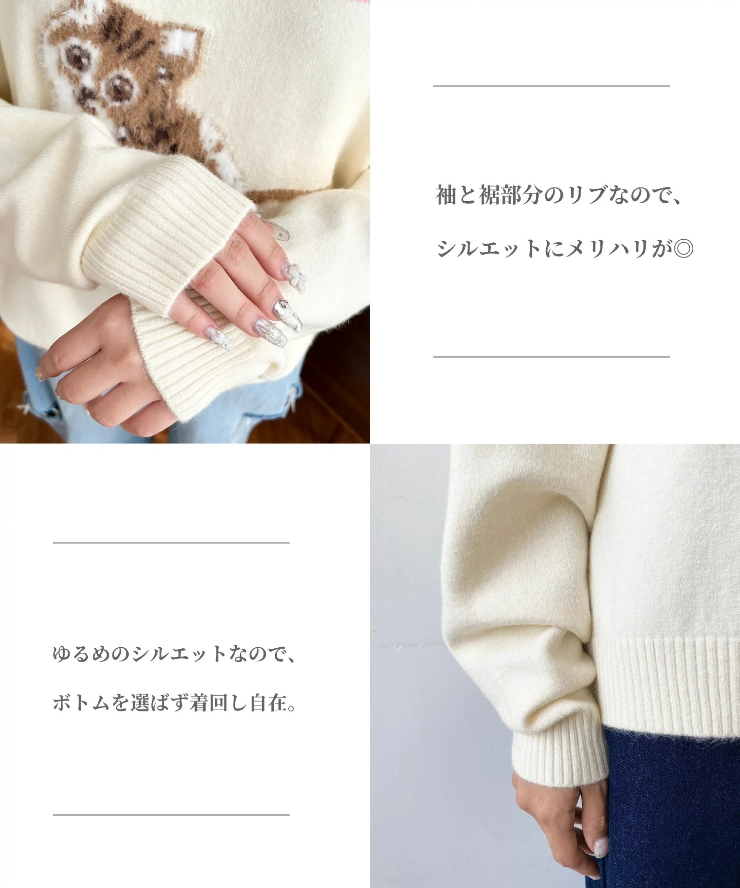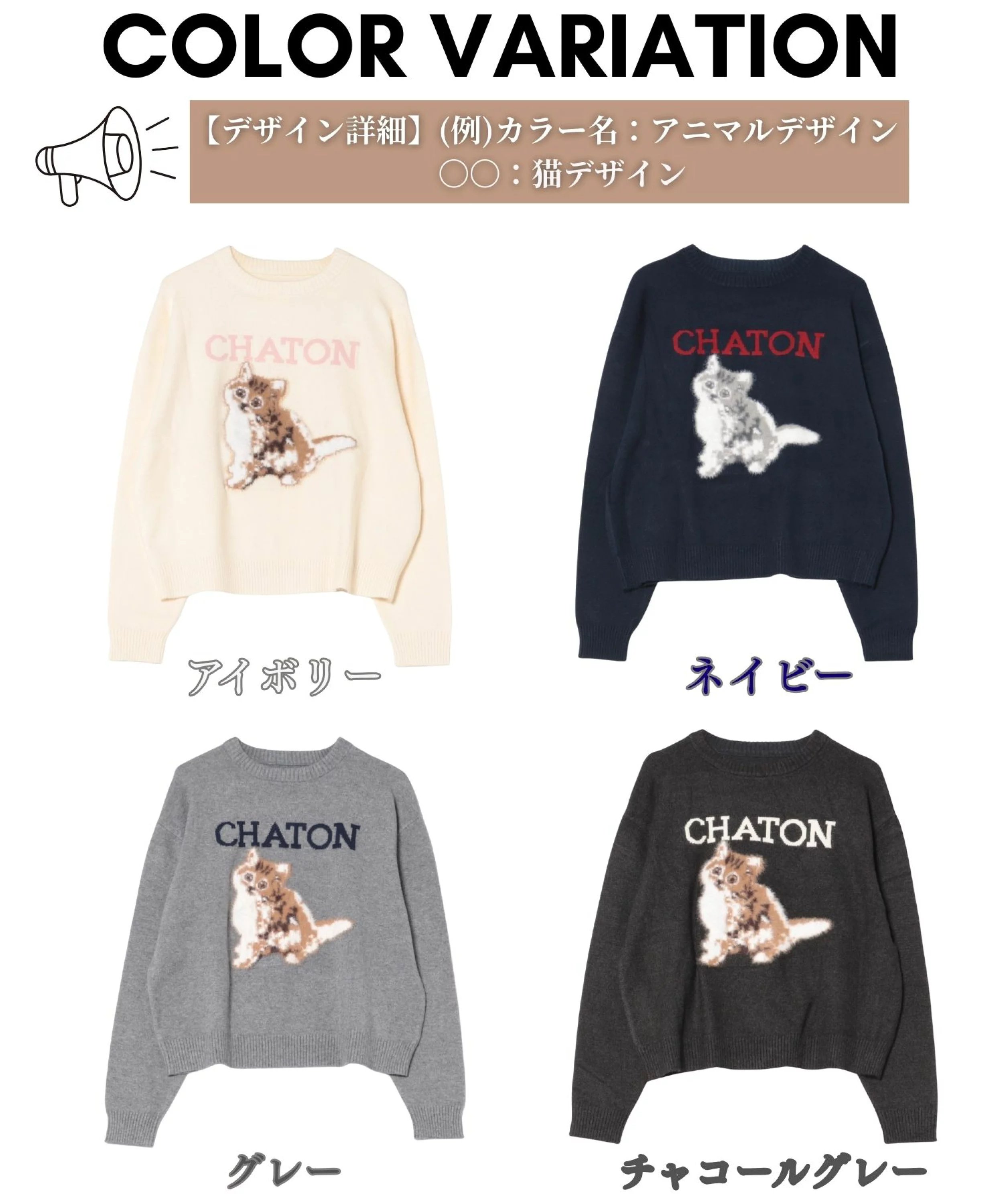 日本直送 日牌moment 限時特價中 針織可愛貓貓狗狗圖案Tee 🔗歡迎網站落單買兩件減$10 ★新到貨★ 【一件就能搭配! 主角級提花動物針織套頭衫♪】 ◆設計 ・可愛貓貓狗狗動物插圖吸引眼球的主角針織衫! 標誌和插圖的時尚配色是重點的針織套頭衫♪ ・因為面料感不會太厚也不會太薄,所以作為主要上衣,也很適合作為外衣的內衣! ・蓬鬆的提花設計突出了小狗、小貓的可愛◎ 【設計詳情】 (例)顏色名稱:動物設計 〇〇:貓設計 〇〇系:狗設計 ◆織物 ・柔軟觸感好,實現舒適的穿著感。 ・輕便,即使長時間穿著,也無壓力,是適合秋冬日常搭配的材質感。 ◆造型 ・推薦搭配闊腿牛仔布×運動鞋的休閒搭配♪ ・迷你裙×靴子搭配甜美休閒也絕對是潮流搭配! ・搭配喇叭褲的話,可以恰到好處地遮住腰部,看起來也很清爽◎ ◆上訴 ・提花 ・動物 ・LOGO針織衫 ・狗設計 ・貓設計 ・插畫設計 ・王道針織 ・針織衫 ~~~~~~~~~~~~~~~ 布料的厚度 一般 布料的透視感 無 布料有彈性 布料的光澤感 無 ~~~~~~~~~~~~~~~ 《模特穿著評論》 ◆身高160cm / 穿著M碼 手感柔軟,不會刺痛,所以穿起來很舒服。 面料不會太厚也不會太薄,根據穿法的不同,可以長期穿著! 貓的插圖是重點,只要搭配簡單的下裝就可以決定搭配。 雖然很輕,但是很暖和,秋冬好像很活躍♪ ※商品圖片是穿著的形象。 根據光線和角度的不同,顏色可能與實物不同。 另外,顯示的尺寸感也可能與實物略有不同,請提前知悉。 ※穿戴、處理時,請務必確認商品上的品質標識和注意標籤。
