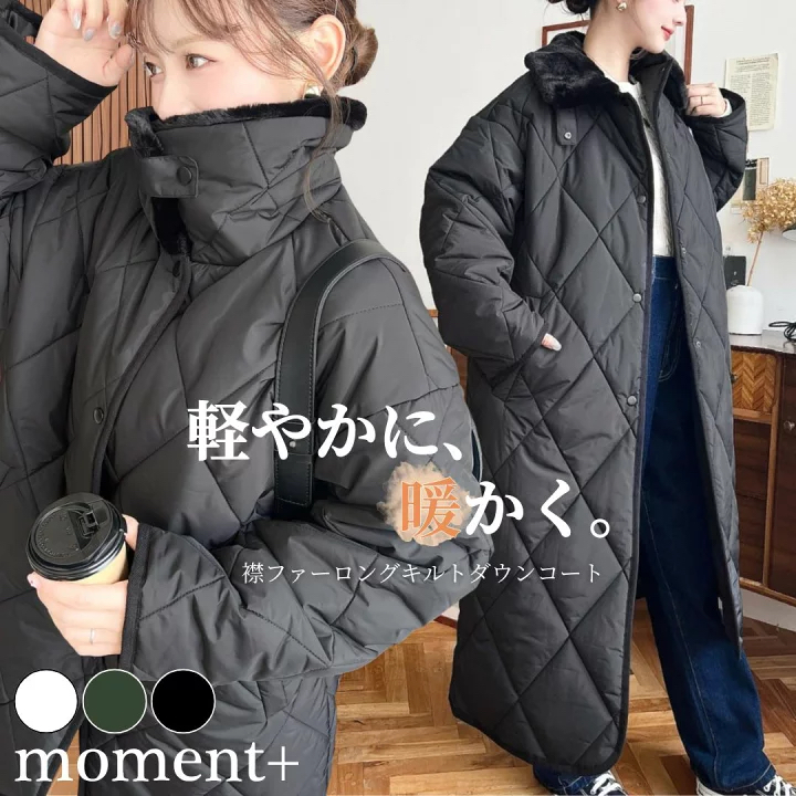 日本直送 日牌moment 限時特價中moment羽絨外套/外套 “銷量超過2萬件!” 女士款毛絨絨滌綸菱格紋環保羽絨服