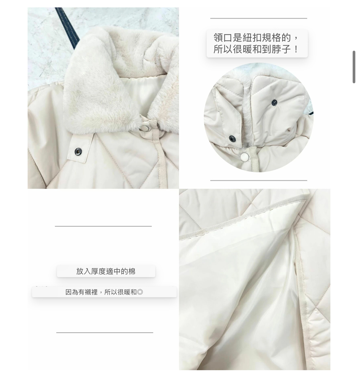 日本直送 日牌moment 限時特價中 ★新到貨★ 日牌moment羽絨外套/外套 “銷量超過2萬件!” 女士款毛絨絨滌綸菱格紋環保羽絨服 🔗歡迎網站落單買兩件減$10 【只要輕輕穿上,就能決定精緻的穿著! 毛皮色外套本期也登場】 ◆設計 ・既可以作為立領也可以作為不鏽鋼領穿的2WAY領子上帶有蓬鬆的毛皮的絎縫外套。 ・超大尺寸的長外套和大尺寸的絎縫設計,給成年人的穿著增添了鬆弛感◎ ・因為連領口都加了厚實的棉,所以非常溫暖,在寒冷的季節一定會派上用場! ◆織物 〇本體 ・給人成熟感的啞光表面進行了防水加工的啞光聚酯纖維。 ・因為可以去除輕微的雨和輕微的斑點、汙垢,所以保養起來很簡單。 ・加入了厚度適中的棉,還帶有內襯,所以很溫暖◎ 〇領子內側 ・毛腿長,體積飽滿,優雅且充滿高階感的人造毛皮。 ・柔軟到讓人想一直摸下去,手感很好,雖然很輕,但是因為是很緊的布料,所以在寒冷的季節一定會大顯身手。 ・不使用真正的毛皮,是現在備受關注的可持續材料。 ◆造型 ・針織衫、運動衫搭配牛仔布、長褲等褲子風格,既休閒又漂亮◎ ・和窄裙和喇叭裙等裙子單品也很搭。 ◆上訴 ・生態毛皮 ・王道休閒外套 ・絎縫材料 ・防寒性出眾◎ ・可持續的 ~~~~~~~~~~~~~~~ 布料的厚度 一般 布料的透視感 無 布料沒有彈性 布料的光澤感 稍微有 有口袋 有內襯 內襯 內襯 ~~~~~~~~~~~~~~~ 《模特穿著評論》 ◆身高159cm/穿M碼 裡面加了棉,雖然很輕,但是很暖和,即使長款也容易移動這一點是令人高興的一點♪ 鑽石被子的立體感和毛皮的切換,即使1件也很華麗,成為搭配的主角。 因為給人一種簡單休閒的印象,所以會根據場景和心情來穿去,很活躍◎ ※商品圖片是穿著的形象。 根據光線和角度的不同,顏色可能與實物不同。 另外,顯示的尺寸感也可能與實物略有不同,請提前知悉。 ※穿戴、處理時,請務必確認商品上的品質標識和注意標籤。