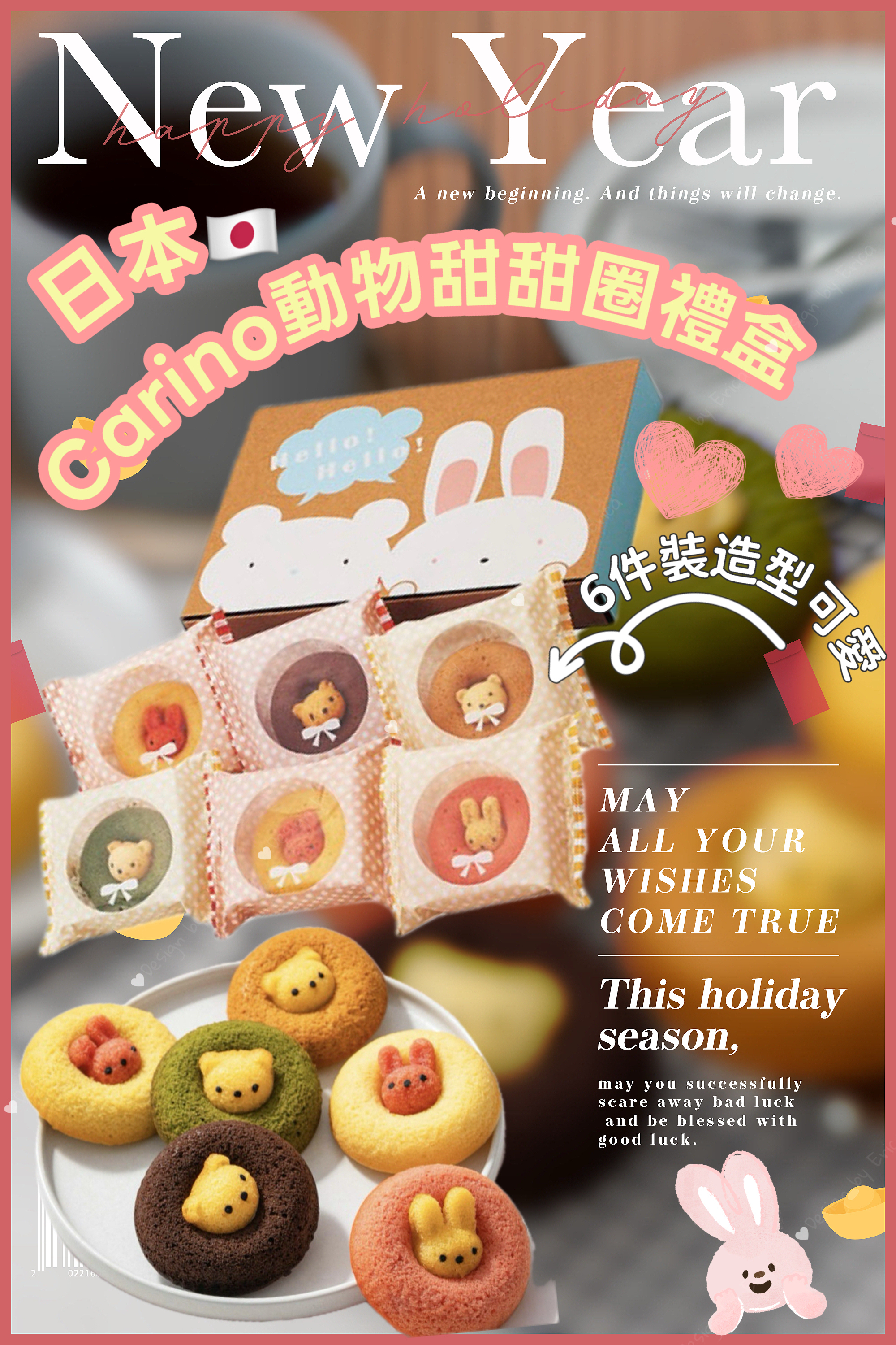 日本直送 Carino動物甜甜圈禮盒一盒6件,包括小兔子原味、小兔子士多啤梨味、小熊朱古力味及小熊抹茶味每件烤甜甜圈上面都有一隻立體小動物蛋糕,非常可愛! 🔗歡迎網站落單 * 特色: 這些是烘烤甜甜圈(非油炸),口感濕潤鬆軟,比一般油炸甜甜圈更健康。 ■保存方法:常温60日 ■規格補足:302×210×47 內容量 兔子草莓、兔子原味、兔子香蕉、熊巧克力、熊抹茶、熊焦糖×各1個 📆15/1截 3pm截 📆2月初到