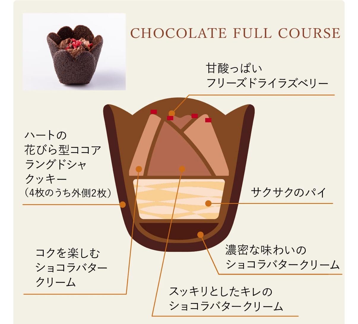 使用了3種口味的巧克力黃油奶油,可以分別品嚐到清爽、濃郁、濃郁感。 每一口都會融化新的美味,就像巧克力的全套套餐一樣。
