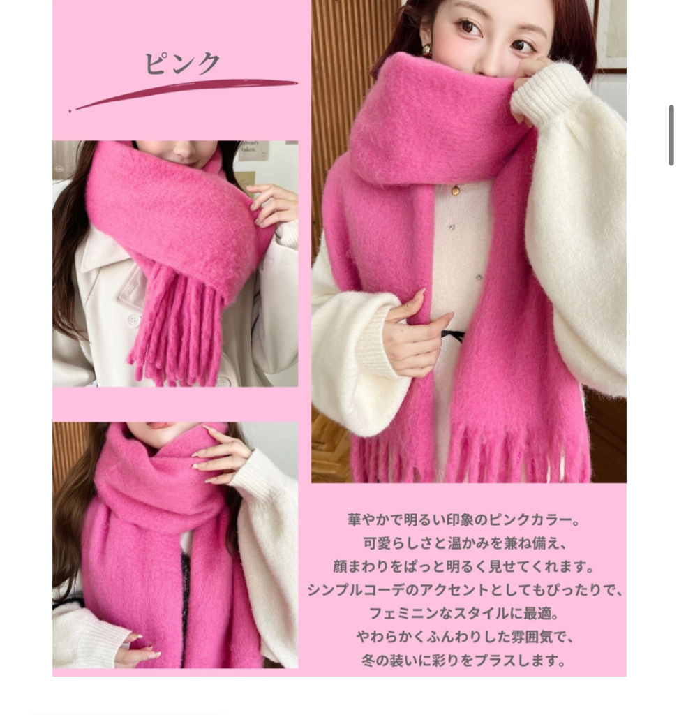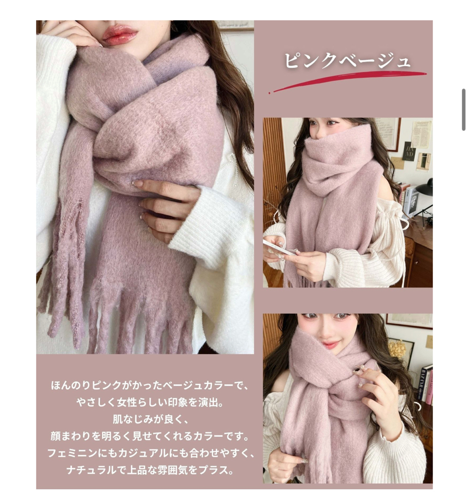 日本直送 日牌moment 大受歡迎的卷流蘇圍巾 累計銷量突破16萬張! 謝謝★ 溫暖、厚實、豐滿的面料感和季節性潮流顏色的提案, 開始銷售4年後,至今仍受到很多人的支援,是長期熱門商品 ◆設計 ・使用了大量柔軟光滑的起毛人造羊毛,充滿體積感的流蘇圍巾。 ・很暖和,覆蓋臉部周圍的分量很大,小臉效果也很出眾◎ ・無論如何顏色都容易變暗的AW風格的點綴大顯身手,是想要擁有多少張的單品! ・從粉彩、鮮豔的顏色到自然的基本顏色,種類豐富◎ ◆織物 ・蓬鬆柔軟,體積十足的刷毛人造羊毛。 ・肉厚保溫性高,能嚴寒,防寒效果高的冬季必備單品。 ・全34種顏色,全部都是講究的原創顏色♪ ◆造型 ・因為是單色,所以很容易搭配任何風格,不用挑搭配,一定會大顯身手◎ ・因為是大尺寸且寬裕的長度,所以可以綁起來、捲起來,也可以像披肩一樣輕而易舉地披上,可以根據當天的心情來享受搭配♪ ・也推薦朋友或情侶搭配不同顏色的搭配,享受連結搭配♪ ・體積 ・變化豐富 ・柔軟 ・羊毛觸感 ・季節商品 ~~~~~~~~~~~~~~~ 布料的厚度 稍微厚一點 布料的透視感 無 布料沒有彈性 布料的光澤感 無 ~~~~~~~~~~~~~~~ ※這個產品使用了獨特的細膩材料。 處理時,請注意以下幾點。 ・穿著時,其他衣服可能會沾上絨毛。 衣服等上的絨毛,請用刷子去除。 ・毛髮下垂時,請用毛刷輕輕整理。 但是,根據刷子的不同,可能會掉毛,請充分注意。 ※商品圖片是穿著的形象。 根據光線和角度的不同,顏色可能與實物不同。 另外,顯示的尺寸感也可能與實物略有不同,請提前知悉。 ※穿戴、處理時,請務必確認商品上的品質標識和注意標籤。 ※銷售頁面的尺寸標註和降價標籤的尺寸標註可能會有所不同。 實物的規格都和尺寸規格一樣。 🔗歡迎網站落單 ***尺寸均為人手量度 可能會有2-3cm偏差 敬請見諒*** **每樣商品拍攝皆有因光線及電腦電話螢幕不同調色方面的色差問題,尤其多數於陽光/燈光下拍攝,網上的商品顯示會比實物淺色, 詳情請參閱實物片/網頁商品圖片,比較貼近實物顏色。 我們不會接受色差原因的退換,如果不能接受色差問題,請多加考慮要否下單,避免任何不必要的爭議,感謝🙏🏻