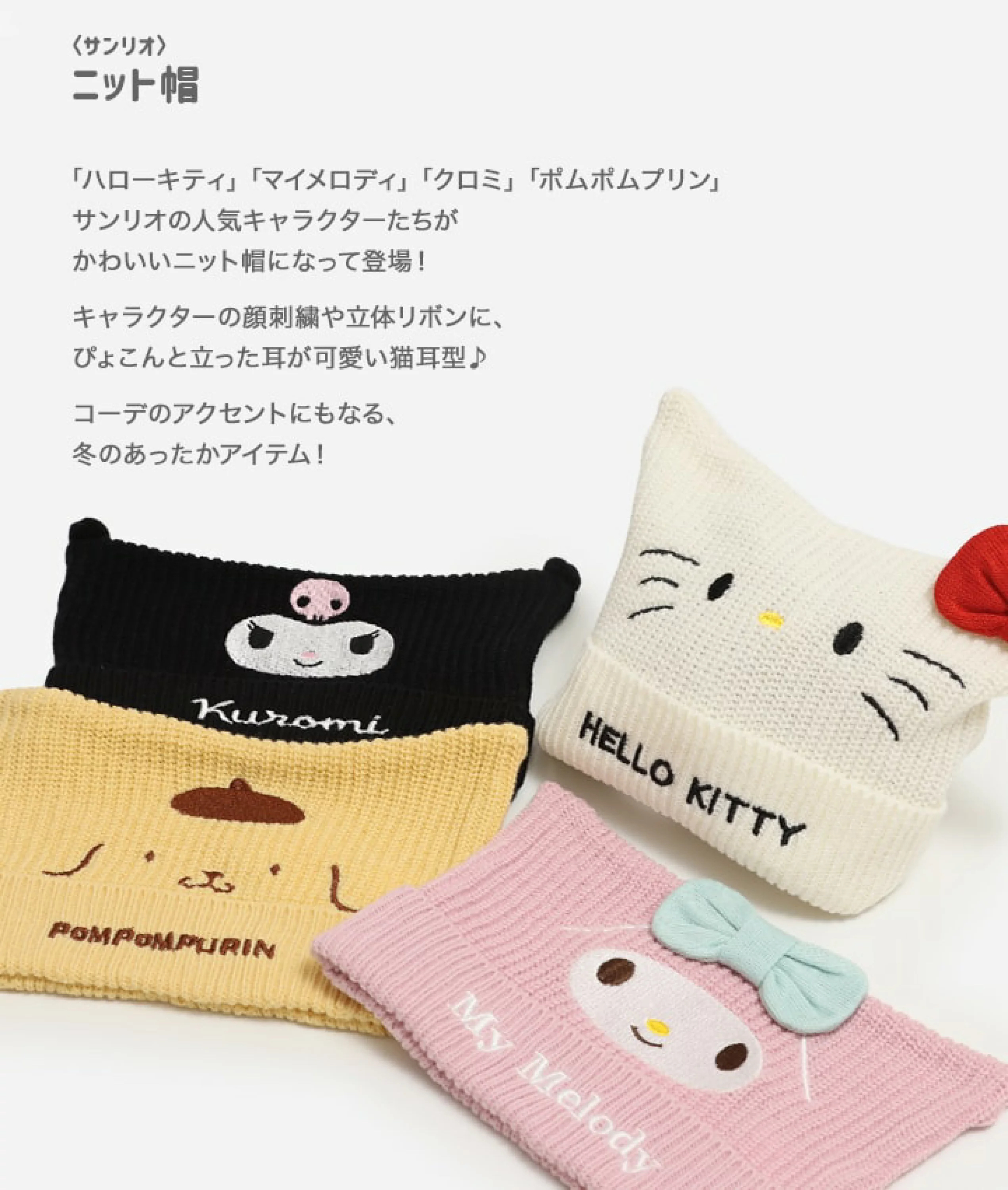 日本直送 快閃⚡️⚡️24/11 下午3時截⚡️⚡️ 限時特價優惠中 Sanrio 可愛卡通冷帽 🔗歡迎網站落單 Melody /Kurumi /布甸狗/Hello Kitty 四款可愛卡通,真係非常之Kawai😍😍 今年大熱貓耳朵款式快啲為你嘅寶貝成為流行嘅指標👍🏻👍🏻 👉🏻由於日本都反應非常熱烈很快斷碼 尺寸:附上圖示 ❗️溫馨提示,由於福袋非常之搶手❗️ 隨時缺貨🙏🏻🙏🏻 📍 出貨時間有機會延遲, 視乎當地供應商實際出貨時間為準 下單時請留意,下單後不設任何退款要求 謝謝理解🙏🏻🙏🏻