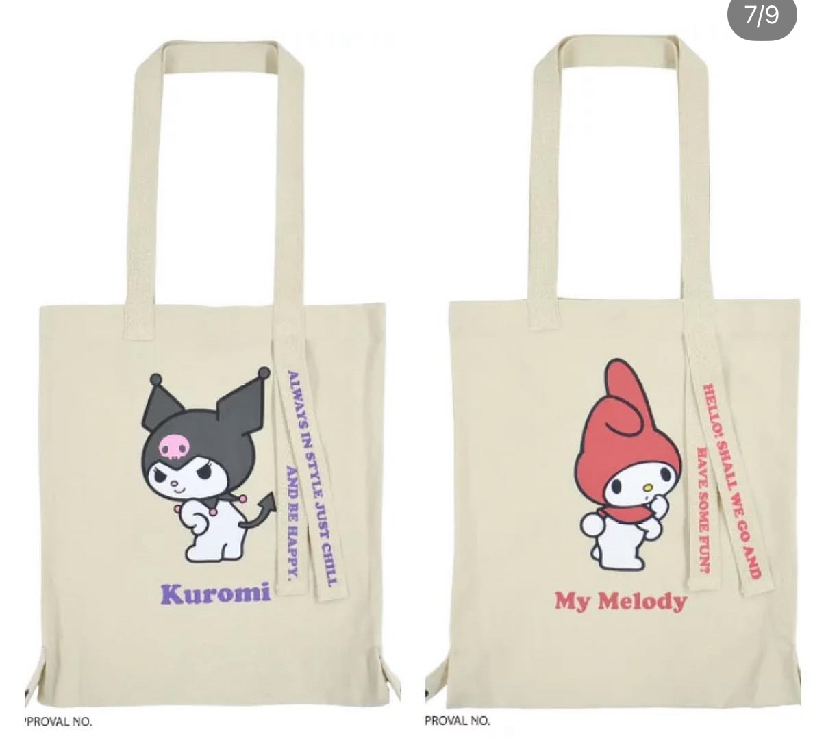 日本預訂 Sanrio圖案可上膊 Tote Bag Sanrio 超好襯又夠大個既好用 Tote Bag 圖案大大個架~ 總共有八個款式俾大家揀 🔗歡迎網站落單$99 Hello Kitty 肉桂狗 水怪 PC狗 Melody Kurumi 蛋黃哥 布甸狗 尺寸: width 36cm length 41cm handle width 2.5cm front handle length 99cm back handle length 68cm 規格 ■生産地:バングラデシュ ■素材・成分:綿 100% ■パッケージ:OPP袋 ■製造年:2022 ■商品札:有り 📆25/11 3:00pm 📆15/12左右到