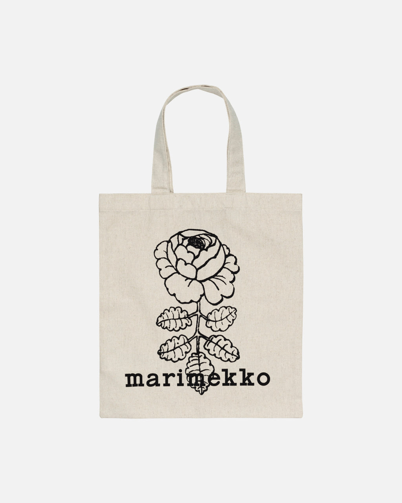 日本🇯🇵直送✈️ MARIMEKKO 數量有限,售完即止 🔗 Vankka TOTE BAG 採用堅固的未漂白棉麻混紡面料製成,正面飾有 Vihkiruusu 大花圖案和 Marimekko 標誌。布料印製於赫爾辛基。 Vihkiruusu(婚禮玫瑰)誕生於Marimekko系列中幾乎不包含任何花卉圖案的時代。然而,Maija Isola卻對花卉主題著迷,並決定創作一系列新穎的花卉印花圖案。標誌性的Unikko與Vihkiruusu一同出現在該系列的設計中。 * 寬度:41厘米 * 高度:43厘米 * 提把長度:54厘米 * 主要材質:79% 棉,21% 亞麻 * 單獨洗滌。反面熨燙。請勿熨燙細節部分。可能會褪色。