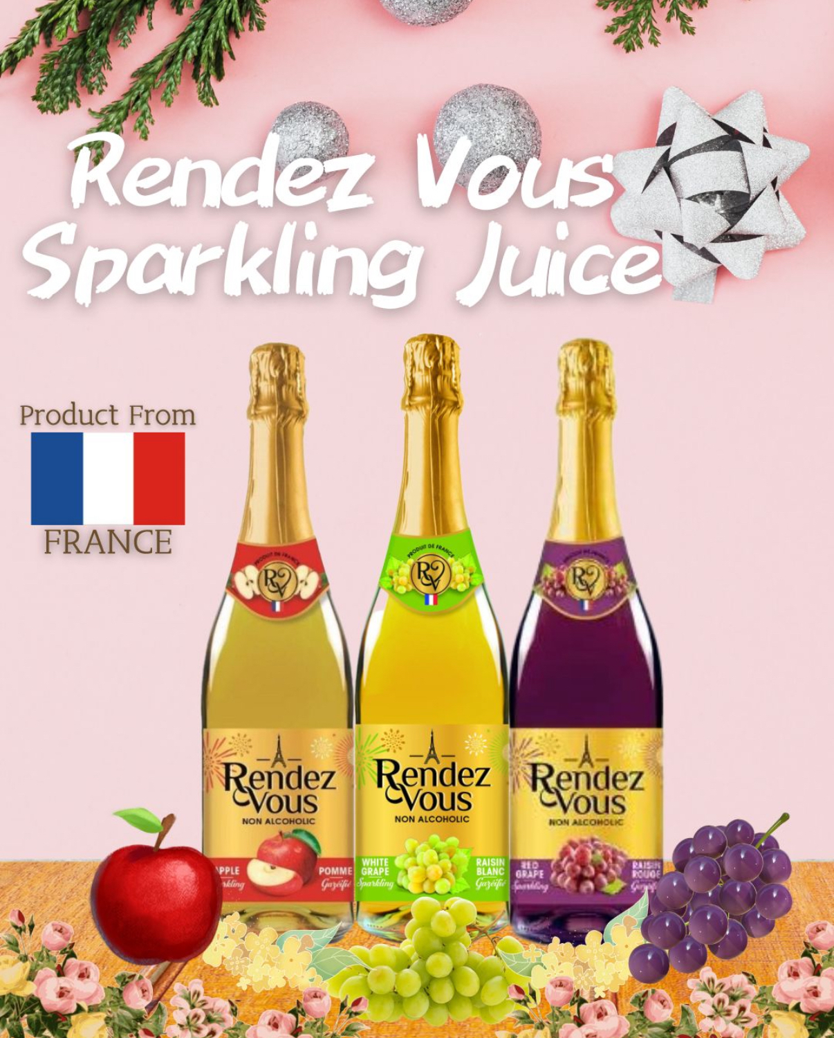 法國Rendez Vous有氣果汁系列 平時出邊都要50幾蚊一支 而家做個優惠價俾大家$100x3 🔗歡迎網站落單 聖誕除夕新年接住嚟 淨係飲汽水太甜? 飲檸檬茶飲到悶? 不如試下有氣果汁啦! 有益健康 仲要有氣氛🥳 一家大細都飲得 A.青提子味💛 B.紅提子味🍇 C.紅蘋果味🍎 容量:750ml 📅28/11 17:00cut 📆12月中到貨