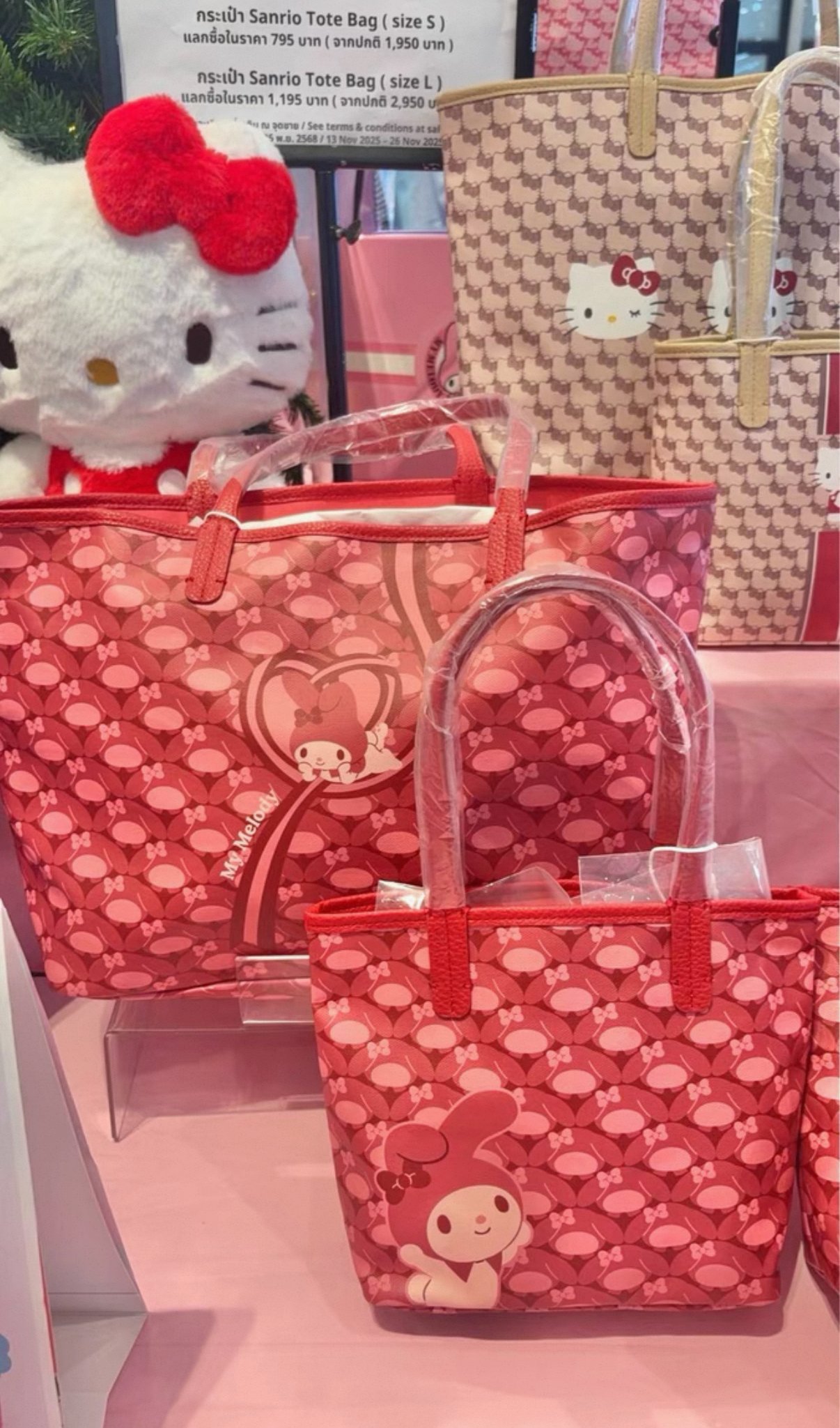 泰國直送泰國限定限時優惠 泰國sanrio new 除咗今年布袋是新款之外,呢個都係最新嘅款式!又輕身又靚,用嚟襯衫一流 聖誕節用嚟送禮禮物都絕對係首選 泰國限時特價把握優惠👍🏻 4 款可選 T1 Hello Kitty (粉紅色) **只有L size** 📌 T 2 /T 3 My MeIody (紅色)有大小尺寸 T4 /T5 Cinamonroll (藍色)有大小尺寸 T6/T7 Hello Kitty (米啡色)有大小尺寸 尺寸選擇 L size 34 x 28 x 15 cm 原價:Thb 2,950 📌限時優惠$4xx SIZE S S size20 x20 x 10cm 原價Thb 1,950 📌限時優惠$3xx