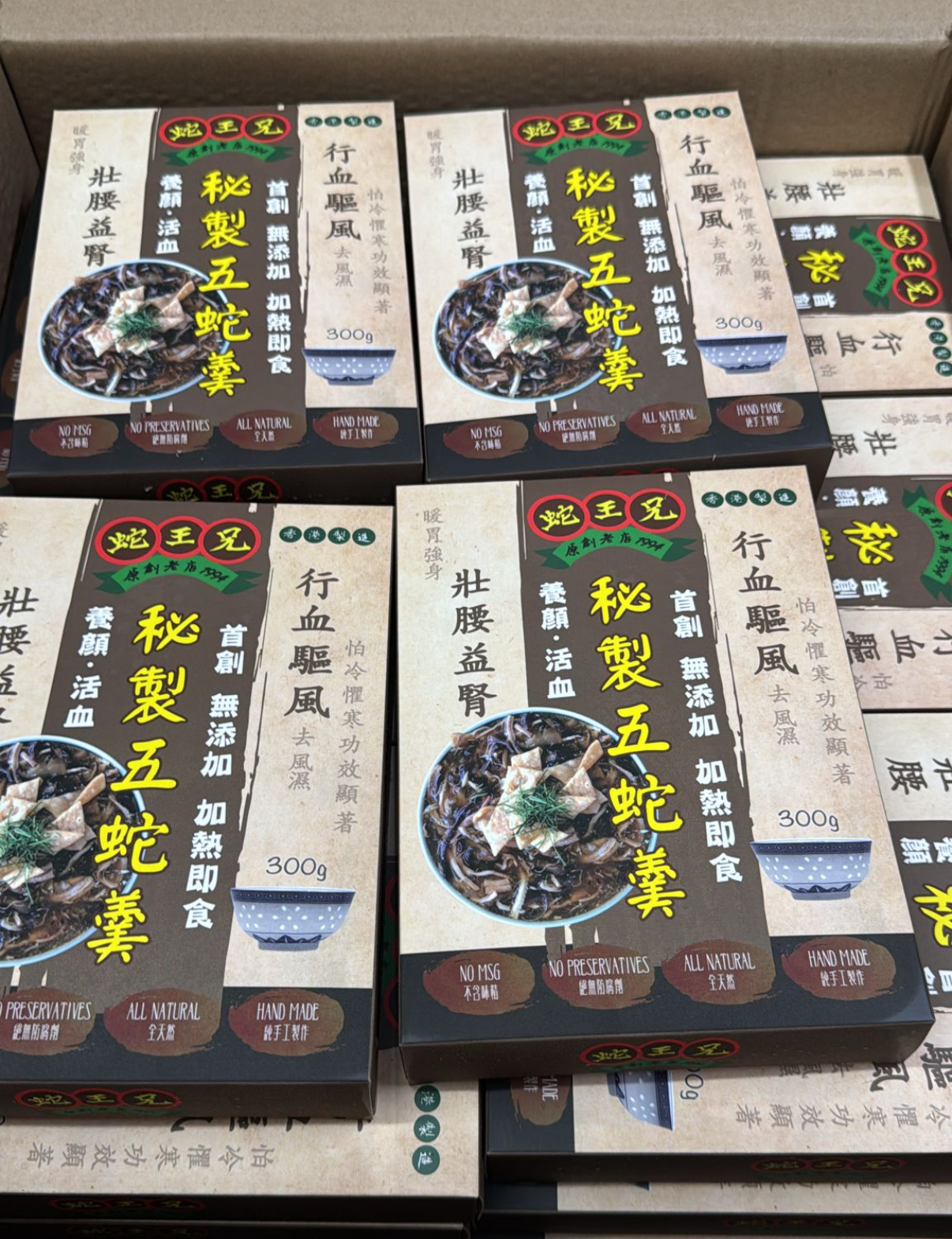 秋冬限定蛇王兄 我哋呢個產品買咗幾年我大獲好評今年繼續💪🏻 🔗歡迎網站落單 香港製造香港文化香港設計 100%香港製造,質量有保證,食得放心! 無添加,無防腐劑,即食,秘製五蛇羹。 📌可另配薄脆同檸檬草(+5元1 set) 即食蛇窶加熱即食蛇羹300g 壯腰益腎養顧•活血 秘製五蛇羹行血驅風去晨 首創 無添加 加熱即食300g 蛇王兄,全港第一家,選用香港國際ISO管理食品 加工廠,嚴格控制生產,秘製五蛇羹蛇止 簡單,快捷,隨時有得食