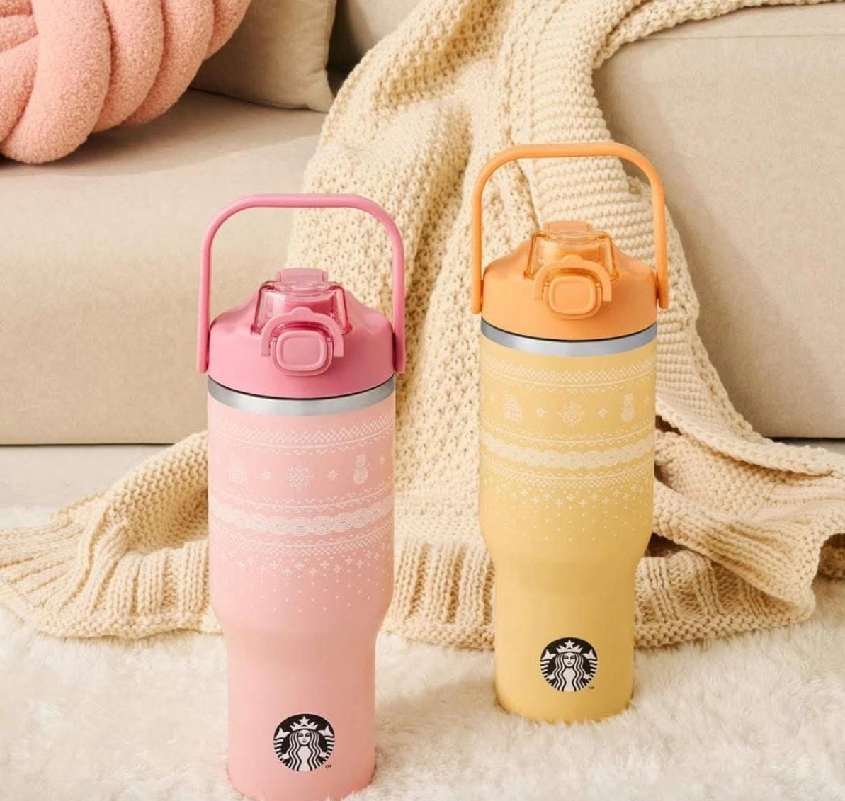 韓國直送Starbucks 新款保溫瓶 ~值得入手👍 韓國星巴克 11/17 Holiday 限定款 可以單獨購買一套買更優惠 🔗歡迎網站落單 毛衣手提保溫瓶 根本是冬天最好看的圖案 粉紅色跟黃,兩色可以選擇 容量超大946ml ▶️訂購商品下單付款完成後14~21個工作天到貨寄出🚫無指定到貨日