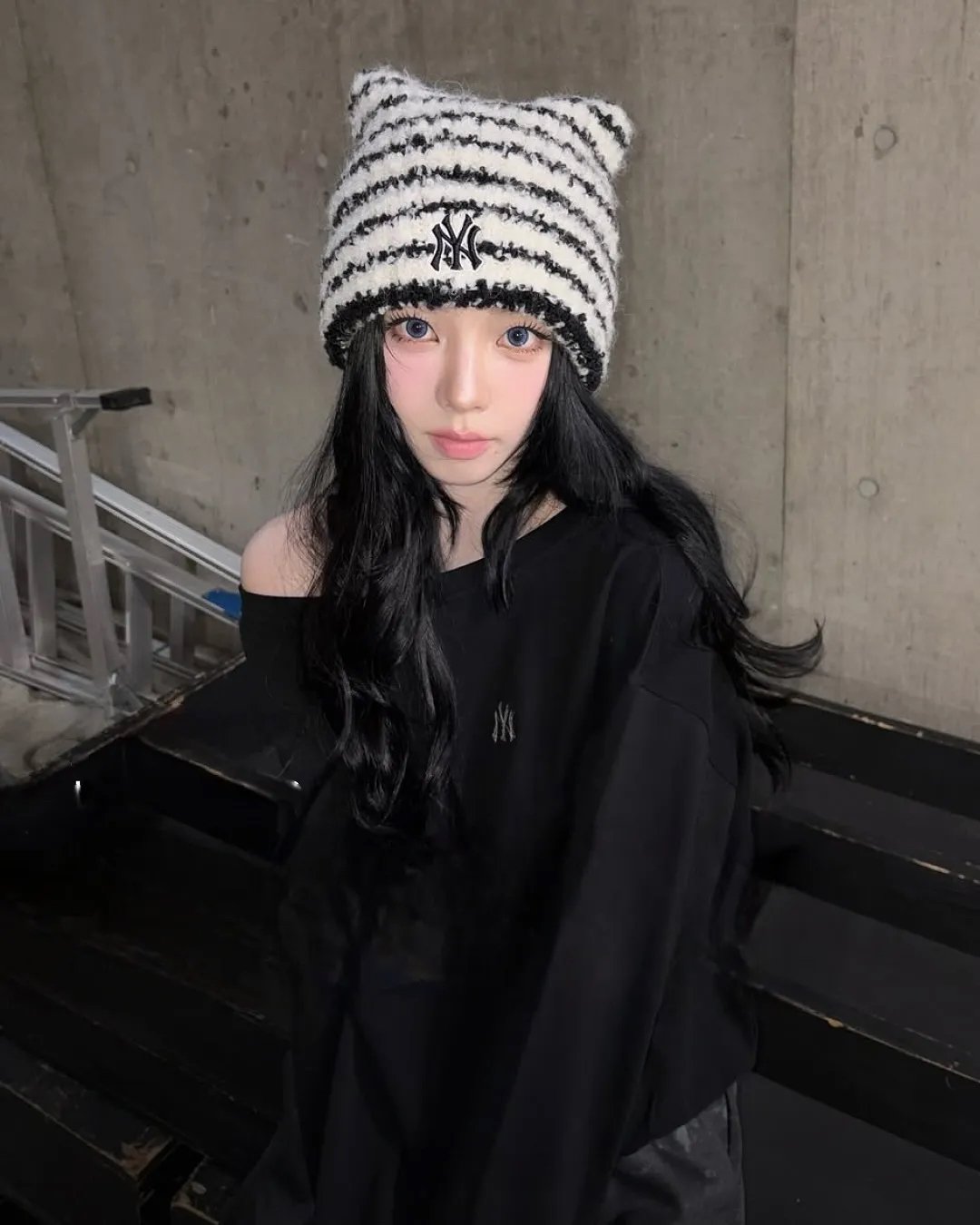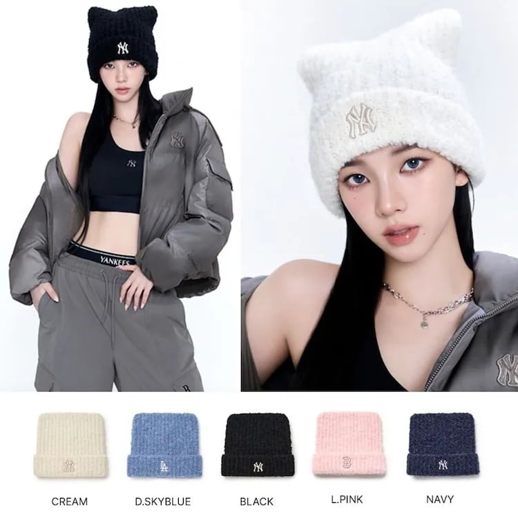 韓國直送韓國代購 預訂韓國代購 Karina同款 MLB 貓耳帽冷帽毛線帽
