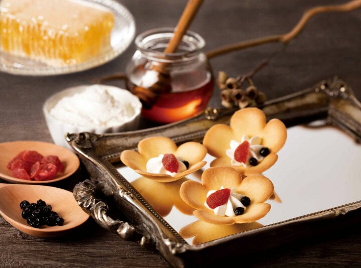 採用法國傳統貓舌餅乾工藝,添加香濃發酵奶油,融合三種以上大阪在地蜂蜜,蛋白打發成蛋白霜,增添輕盈空氣感,口感細膩順滑,貓舌餅酥脆極致,溫潤甜美不膩口!