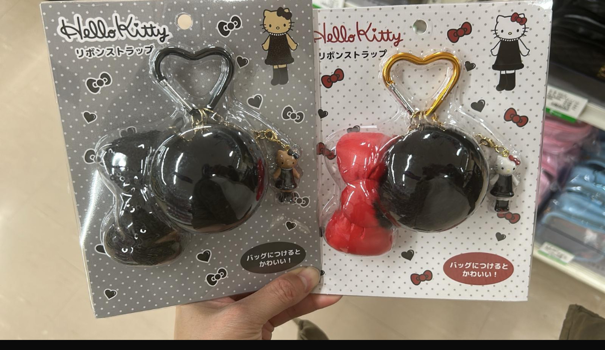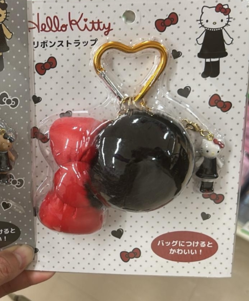 Hello Kitty紅色蝴蝶結黑色毛毛球