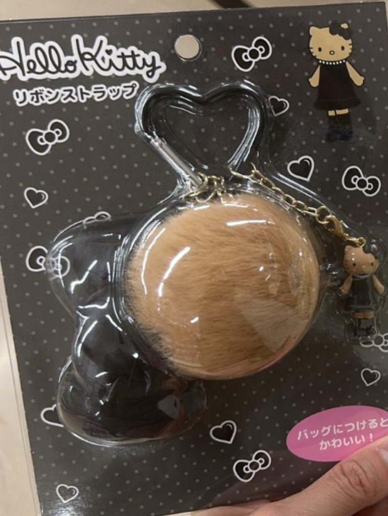 Hello Kitty黑色蝴蝶結啡色毛毛球