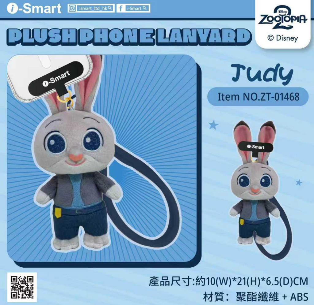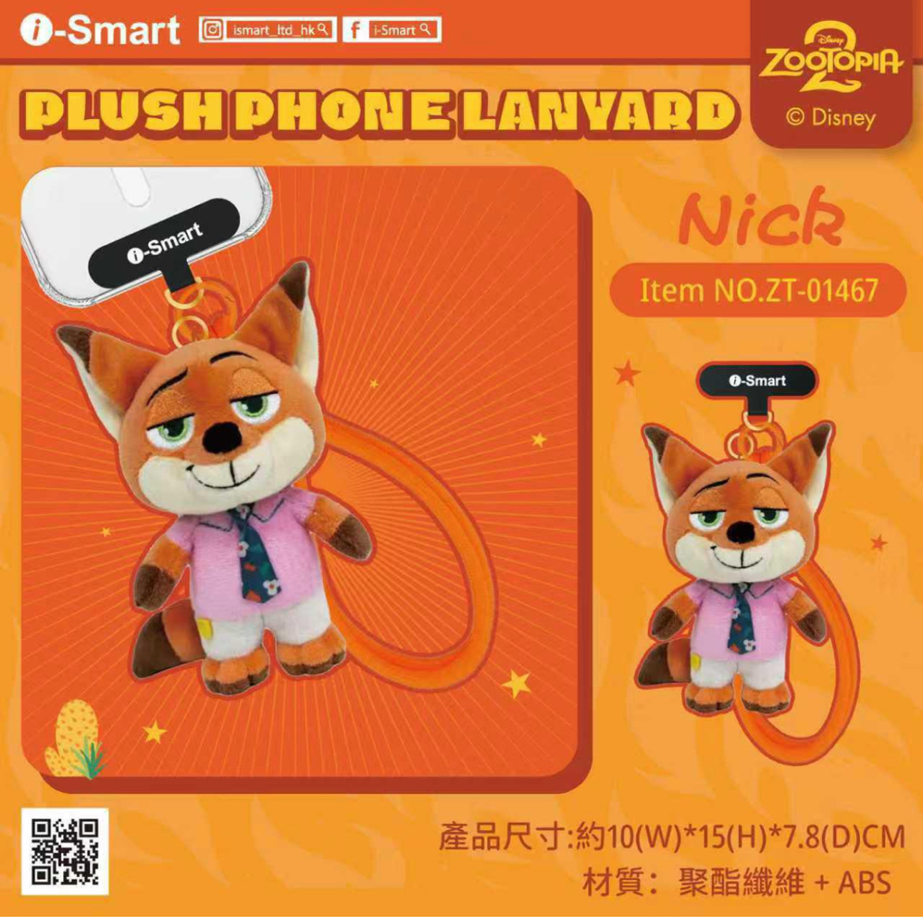 i-Smart 毛絨手機掛繩系列 🔗歡迎網站落單買兩件減$10 🚫截單日13/1中午12點 🗓️預計一月中到 1️⃣Nick 2️⃣Judy 3️⃣Lucifer 4️⃣生蠔BB 產品介紹: 🔹材質:聚酯纖維+ABS 🔹精緻掛件,細膩毛絨 🔹配有手機墊片和掛繩 🔹即可作為掛件,也可以當做手機掛繩 產品尺寸:70*140*70mm 重量:40g